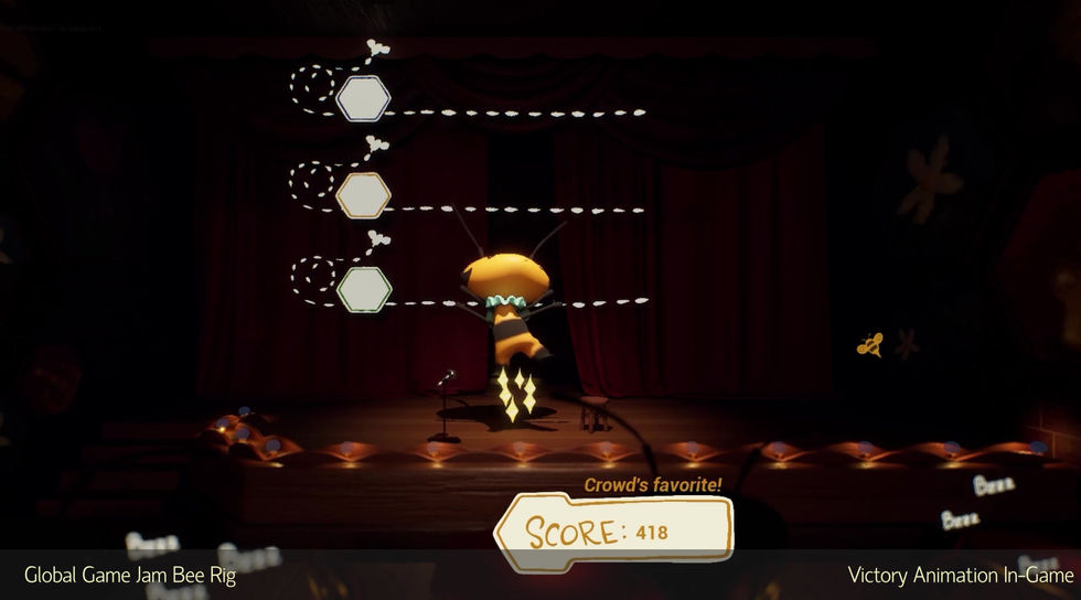 This anthropomorphic bee rig was made for Global Game Jam 2024. Our concept was a bee comedy club, where the bee is telling jokes by dancing, as bees communicate through dance in real life. Normally I would take much more time to make a rig, but due to the time constraints of the contest (5 days), I only had a single evening to actually work on this.